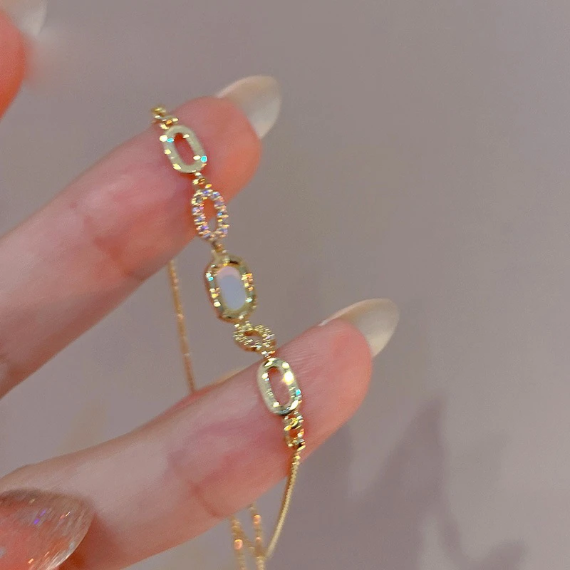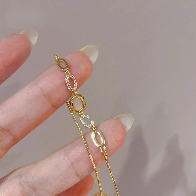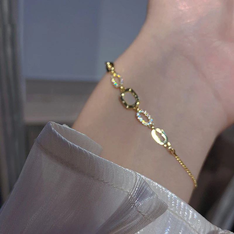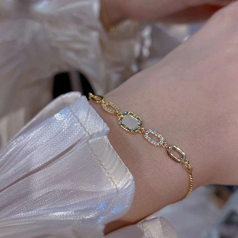 2023 New Luxury Elegant Gold Color Zircon Bracelets for Women Square 18K Gold Plated Adjustable Bracelet Party Jewelry Gifts