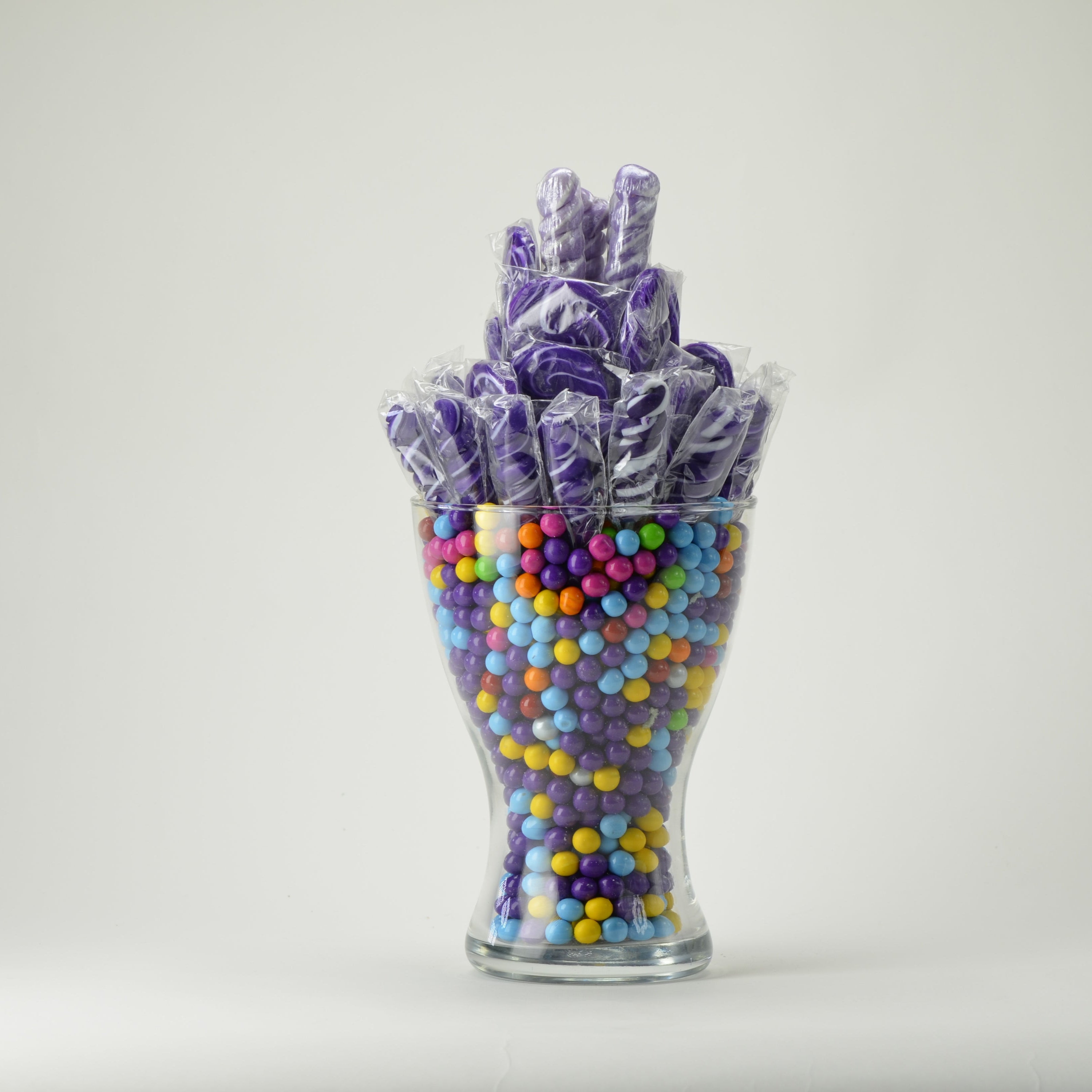 Step into a world of wonder with Twilight Candy Dream — a spellbinding bouquet of purple and lavender swirly lollipops, perfectly paired with rainbow-mixed chocolate balls that burst with color and flavor. It's the perfect blend of mystery and magic, like a candy-colored sunset melting into a starry sky. Ideal for dreamers, party-goers, or anyone craving a little taste of fantasy.